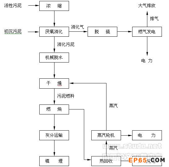 HERS法所用的物料是經(jīng)過機械脫水的消化污泥。污泥干燥采用的多效蒸發(fā)法一般是用蒸發(fā)干燥法,不能獲得能量收益,而采用CG法可以有能量收益;污泥能量回收兩種方式,即厭氧產(chǎn)生消化氣和污泥燃燒產(chǎn)生熱能,然后以電力形式回收利用。