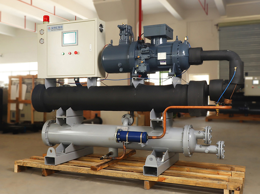 本公司水冷螺桿式冷凍機組全部精選原裝進口名牌半封閉螺桿式和半密閉往復式壓縮機。雙螺桿5:6齒數比及先進的線性設計,低碳節能環保;性能好、噪音低。根據客戶需要和冷噸位大小,采用單機或多機組合。壓縮機可依負載變化,自動交替運轉,平衡各壓縮機的運行時數,大大延長了冷水機組的使用期限,無故障運行可達45000小時以上。